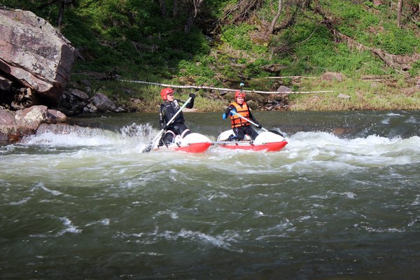А через 4 дня был второй сплав по Лемезе и порог Черная речка. Но воды было совсем мало и даже до 2 к.с. порог с трудом дотягивал. Там мы пытались кильнуть кат под нахлестом воды, но получалось только смывать другана с палубы)))