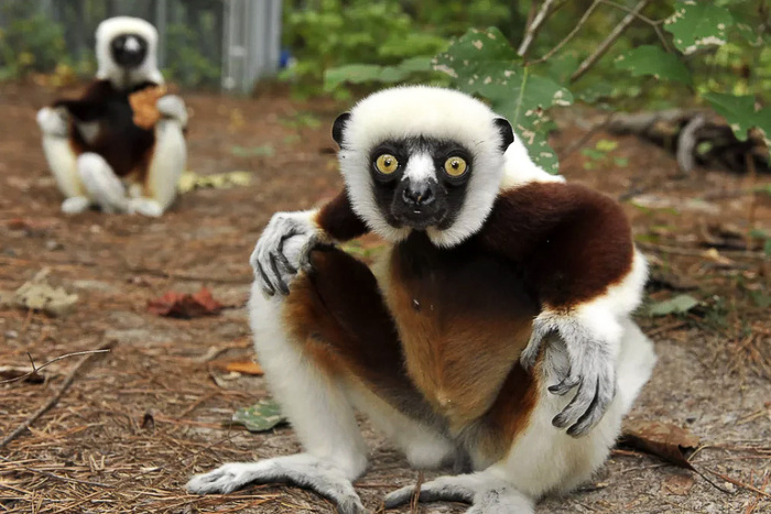 И я немного слукавил, обвинив учёных в том, что они дали примату такое нелепое имя. На самом деле, он тоже взято из лексикона этих замечательных созданий, некоторые виды западных сифак, таким криком привлекают внимание сородичей: "Сии-фаак". Для англичан это слышится, скорее всего комично 😁