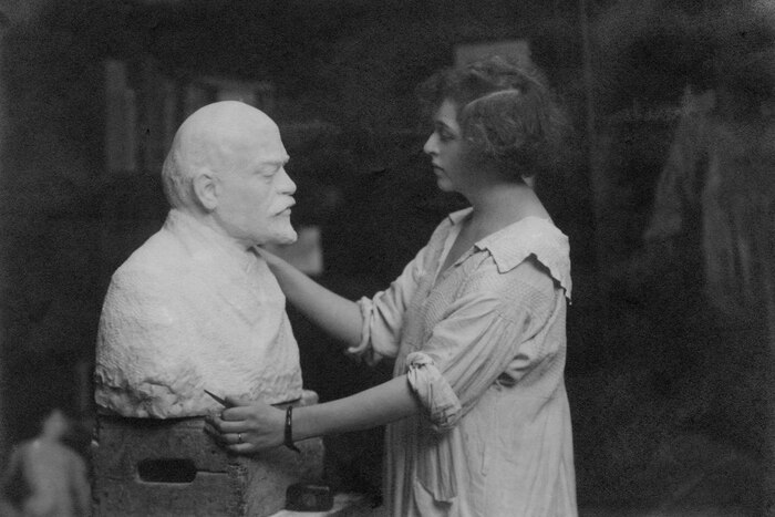 По приезду в Москву изваяла бюсты высшего советского руководства - Ленина, Троцкого, Дзержинского и Зиновьева (опять же в Москве якобы завела роман с Троцким, причем встречалась с ним в бронепоезде).
