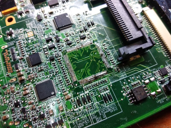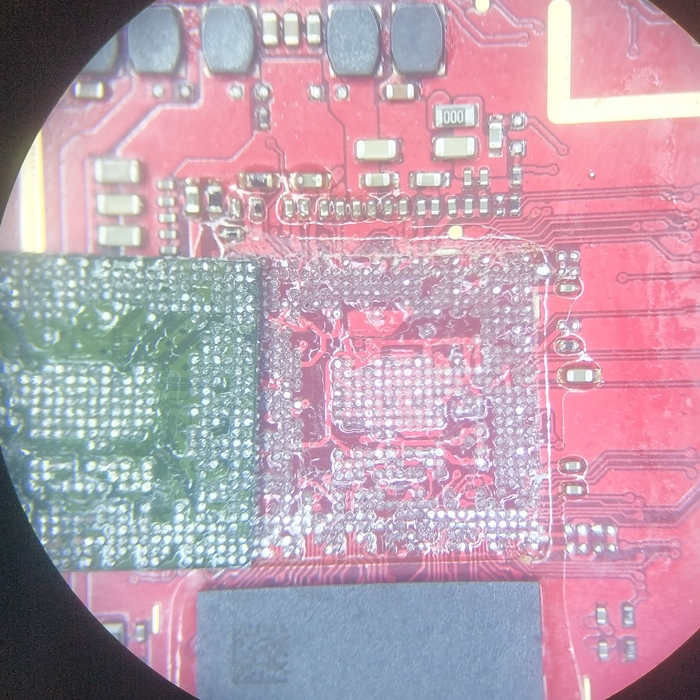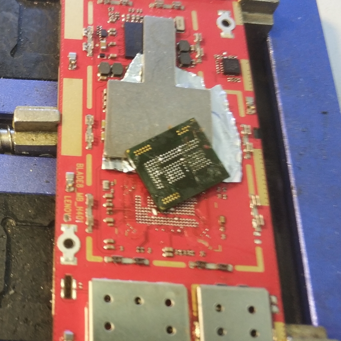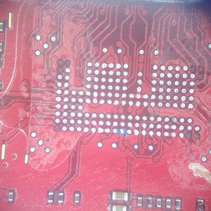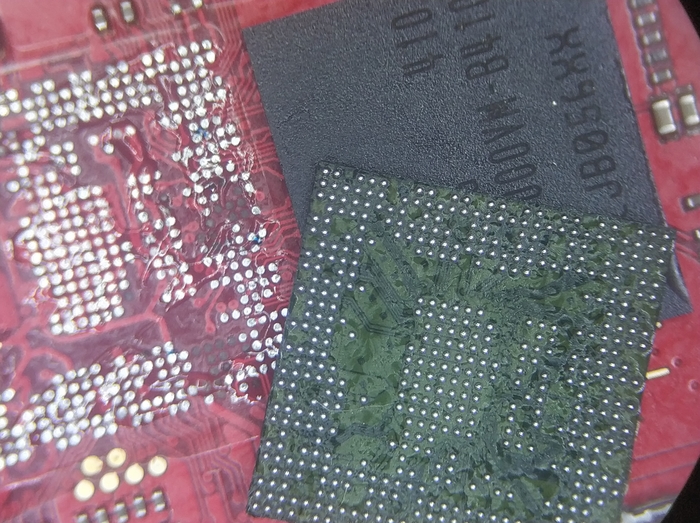 Ошариваем процессор паяльной пастой, мажем на посадочные площадки флюс и припаиваем CPU на место.