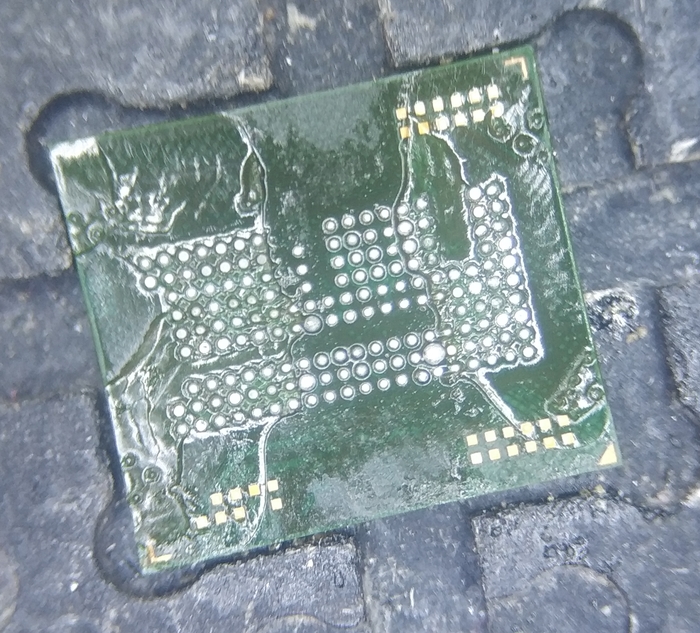 так выглядит только что снятая микросхема, с остатками компаунда.