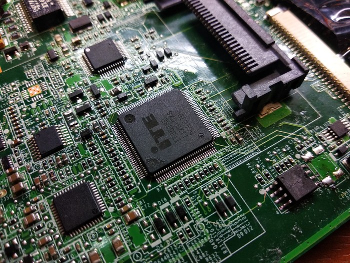 Проверяем микросхему на программаторе – она оказывается полностью исправной. Это говорит нам о том, что нет коннекта между памятью и процессором.