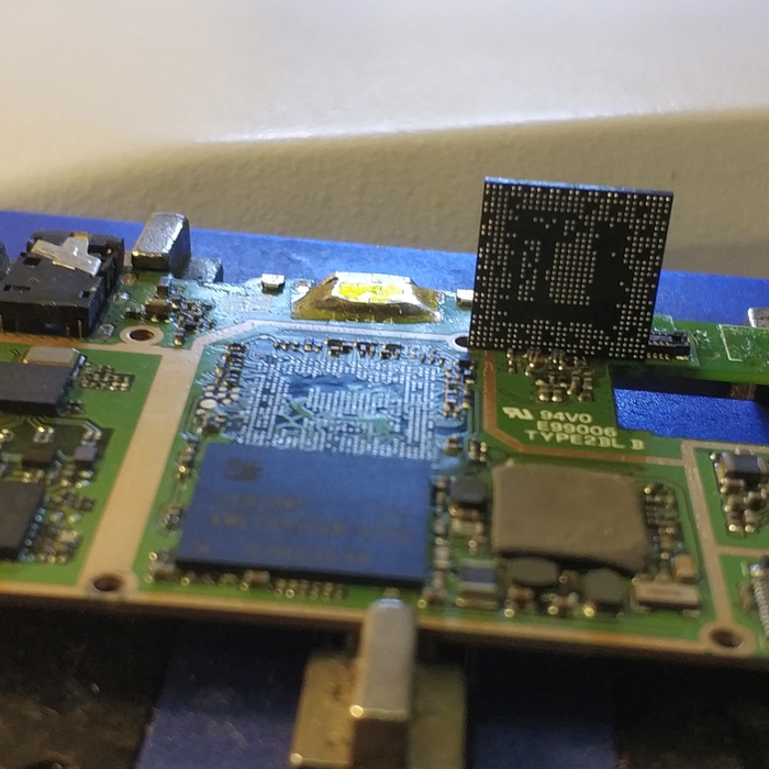 В данном случае она совмещена с оперативной памятью и имеет название eMCP. Плата у Lenovo залита специальной смолой, называемой компаунд, что усложняет процесс монтажа-демонтажа микросхем.