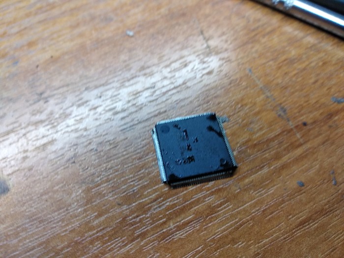 Припаиваем флешку и снимаем процессор. Абсолютно так же, как и до этого предыдущую микросхему.