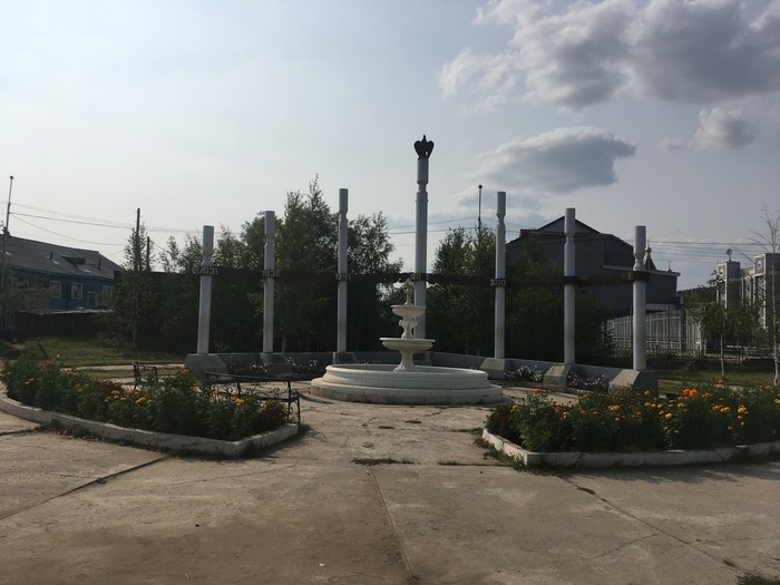 Ещё интересно отношение к строениям. В Олёкминске есть центральный парк. Ну как парк, просто лес обнесли забором и сделана одна дорожка. Или есть стелла, на которой запечатлены важные вехи в истории городка, вроде основания, революции и т.д. Всего семь событий, из них заполнено пять и два без дат. Может архитектор, запроектировавший этот памятник что-то знал…