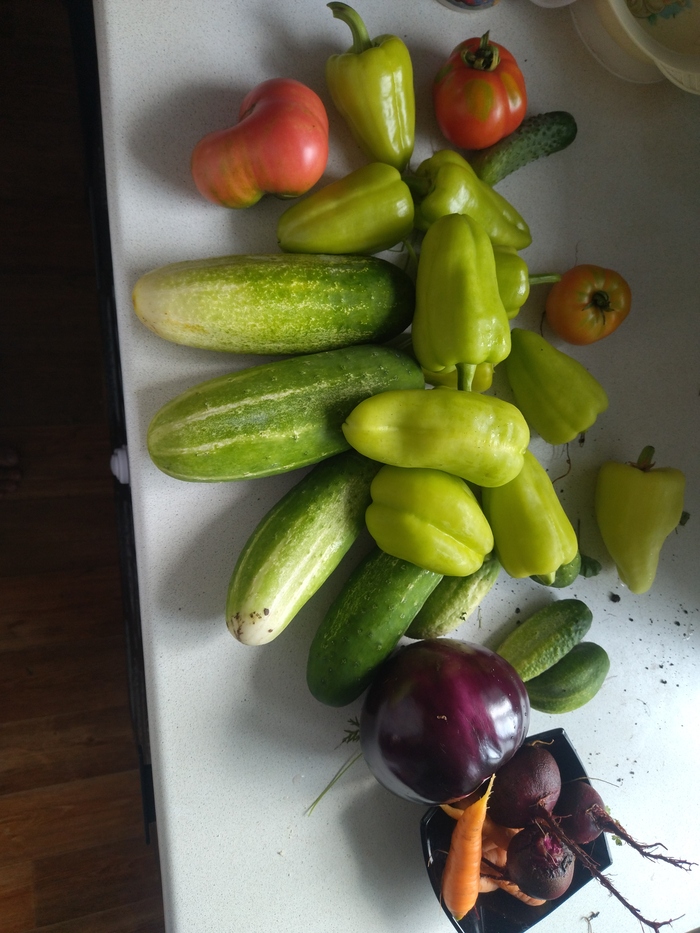 На недостаток питания тут можно не обращать внимание, это часть эксперимента. Просто фотки только с "плохой" грядки. На "хорошей" всё то же самое по размеру и урожаю, только листья чуть зеленее.