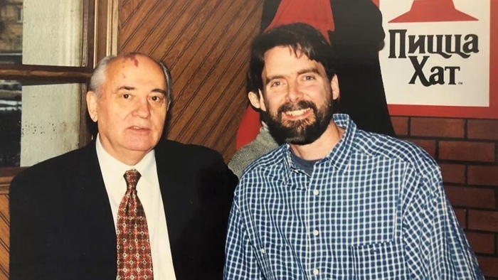 Михаил Горбачев на съёмках рекламы «Pizza Hut». Москва, 1997 год.