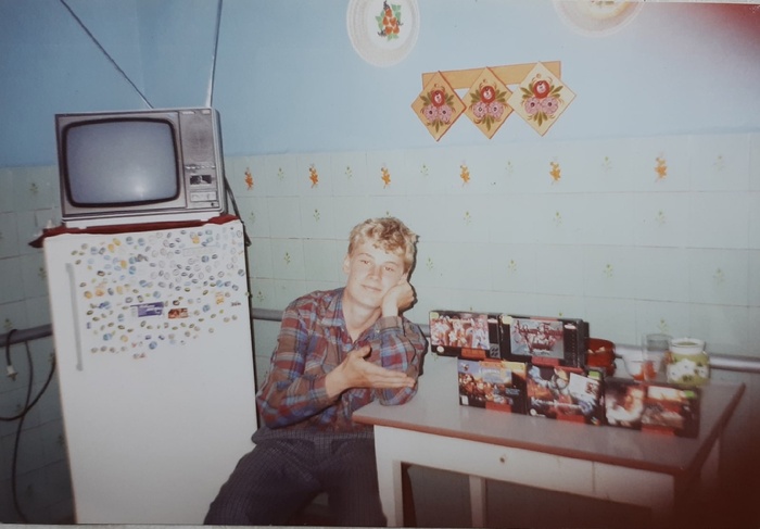 Парень хвастается своей коллекцией картриджей, 1990-е годы.