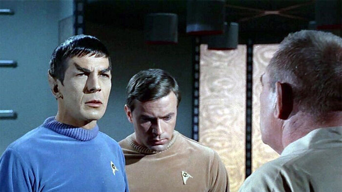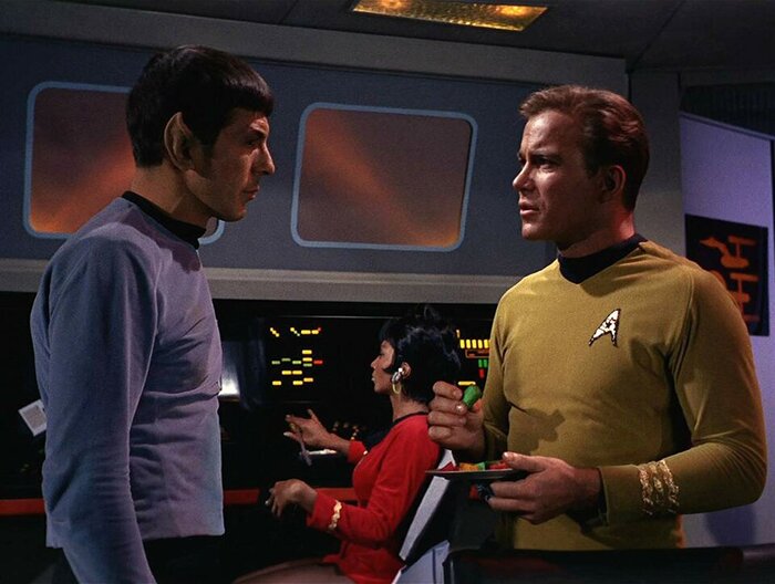 Неожиданная (для всех, кроме Родденберри) популярность Спока привела к конфликту Шетнера (он заменил Джеффри Хантера, игравшего капитана в пилоте) и Нимоя на съемках, а затем к еще одной важной новации «Стартрека». Актеры, каждый из которых до сериала не имел особенно блестящей карьеры (Шетнер был более удачлив, Нимой — менее), получив наконец свой звездный билет, не собирались ни с кем делить место. Они постоянно выясняли, кто же — капитан или Спок — главный герой шоу. Потом каждый, надувшись, запирался в своей гримерке. Решение проблемы подкинул Айзек Азимов, который посоветовал Родденберри сделать Кирка и Спока больше чем друзьями — связать их бромансом, как героев античных мифов (или вестернов).