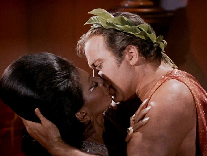 Именно в «Стартреке» был показан первый на американском телевидении межрасовый поцелуй: капитан Кирк и Ухура сделали это в эпизоде «Пасынки Платона» под влиянием инопланетного гипноза; в южных штатах эту серию не показывали. На самом деле сцена была задумана чуть менее скандальной. Целовать Ухуру должен был вулканец Спок, который вообще не совсем человек. Но Шетнер не мог позволить, чтобы в центре исторического момента оказался кто-то другой, и так свершилась одна из телевизионных революций.