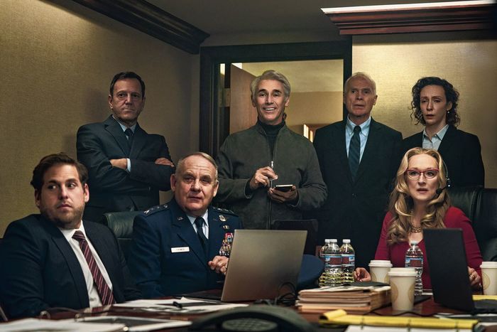 Один из самых ярких персонажей фильма - Президент США Джейн Орлин в исполнении Мэрил Стрип. Актриса представила собирательный образ из, разумеется, Дональда Трампа и (сюрприз!) Хиллари Клинтон. Отдельные штрихи к портрету взяты у Билла Клинтона (не считая их совместной с Орлин фотографии, показанной в фильме) и Барака Обамы. В принципе, это не ново, ведь представителей власти и раньше изображали как тупоголовых кретинов с ограниченным кругозором, неспособных видеть дальше следующих выборов и тем более принимать решения в критических условиях. Некомпетентность руководства, назначение на ответственные должности родственников и близких людей (глава НАСА в фильме - бывший анестезиолог и "супердонор" президента Орлин), набор по квотам - явления весьма частые, увы, не только для постсоветских стран. Тем не менее, для открытой критики существующего порядка вещей нужно иметь немало храбрости. У режиссера ее, по всей видимости, в избытке, раз на роль по сути главного антагониста фильма выбрана сильная и независимая женщина, лидер свободного мира. Высмеивать алчных и недальновидных мужиков с Уолл-Стрит или идиота Буша-младшего - это одно, но вот неприкрыто критиковать "хиллари" в 2021-м... (!)
