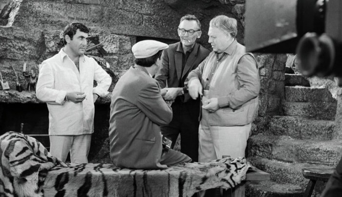 В сцене, где герой Юрия Никулина должен был поскользнуться на арбузной корке и упасть, сам Никулин долго не мог выполнить трюк. В итоге в эпизоде актера заменил Каневский — в кадре видны его ноги. Также Леонид Семенович выступил как автор «иностранного» текста, который произносит его герой. Артист придумал часть слов, в частности «мордюк», — многие увидели в этом отсылку к персоне Нонны Мордюковой, с которой он успел поссориться.