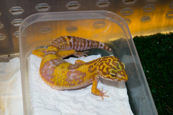 В общем, долгое прочтение нужной инфы сподвигло сперва взять эублефара. И как-то так вышло, что я написала двум заводчицам, и везде согласились продать мне своих эушек. Ладно, подумала я, два так два, сделаю второй террариум… И одна из девушек предлагает: есть еще одна самочка, отдам за тыщу.