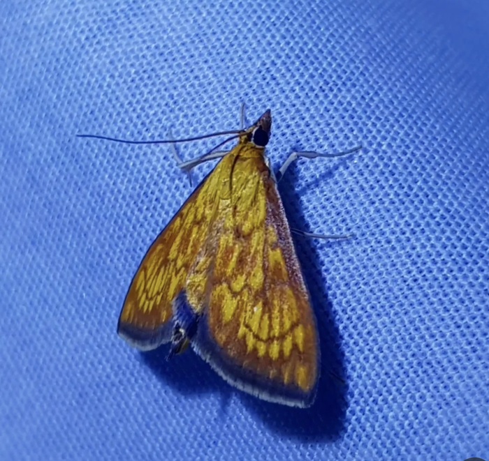 Фотогеничная и немаленькая Evergrestis frumentalis. Думал, что огневка, но авторы относятся к травянкам Cranbidae. Понятно, что русского названия нет, в переводе с чешского похоже на "украшенная обёртка".
