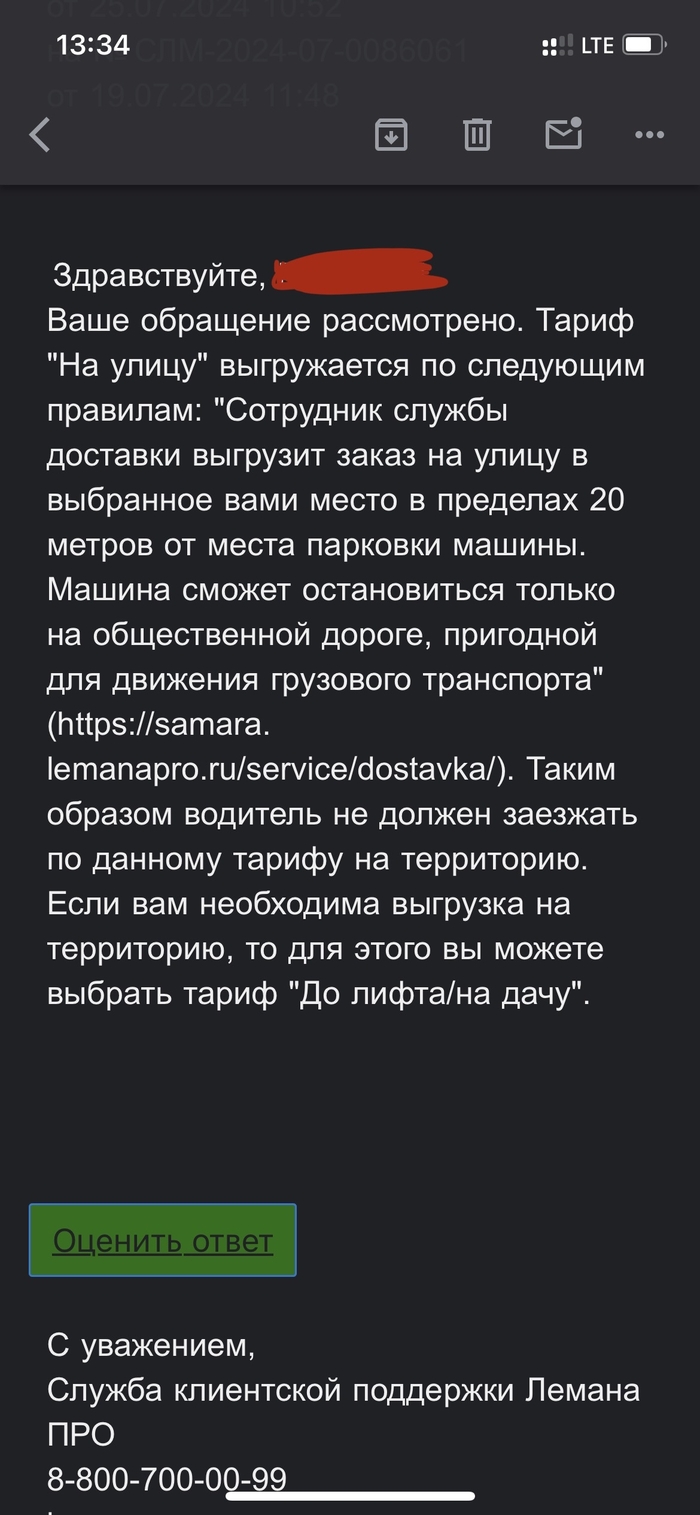 Заказала я значит 2т керамогранитной плиточки в вышеназванной компании. Заказала я еще и доставку в свои еменя. Сектор у нас частный, ворота-калиточка закрываются, выгружу, думаю, на улице. Тем более условия доставки позволяют - предлагают мне отнести до 20 м от машины. Так вот, товарищи, не ведитесь на провокации! 20 м работают только когда территория общественная! А если на пути в 20м встретится забор - товарищ водитель не за какую доплату вам за него не перенесет и не переедет его даже если денег еще раз предложить)) ладно, к водителю претензий нет, соблюдает инструкцию - молодец! А вот к вымогателям в лице представителей нашего любимого бизнеса - есть! Я, оказывается, должна была выбрать доставку «до лифта», и не важно, что лифта у меня нет, и не важно, что мой заборчик в 10 метрах от дороги и я вроде бы укладываюсь в правила на сайте. Но Поди и заплати 3 тыс сверху. Чтобы за забор выгрузили. Ну вот прям чуть чуть за забор, прям вот можно сразу за границами забора оставить. Вот до границы забора 7 тыс, а за границей 10 начинается! Сначала то я конечно вообще не поняла, почему грузовая газель не может заехать во двор, по щебенке, летом, в чистую сухую погоду. Но опустим, правила есть правила. Может там свои моменты. Короче, сервис нам только снился)) логика тоже покинула это место… и только желание легкой наживы осталось. Да, Леруа? Скрины расчета цены доставки и ответ поддержки прилагаю. Будьте внимательны и осторожны)