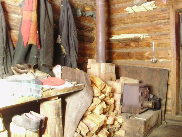 Переходное зимовьё, так называют бревенчатые избушки в лесу.