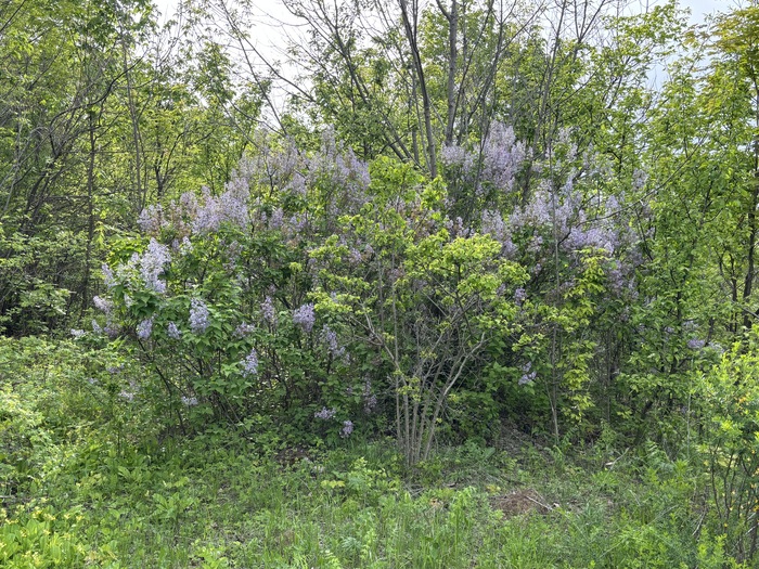 В конце дороги расположен вот этот прекрасный куст сирени. Не знаю каким ветром его занесло в центр леса.