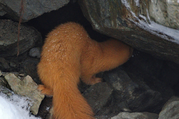 Окрестности административного корпуса Горного лесничества национального парка «Шушенский бор» (Красноярский край) облюбовал колонок