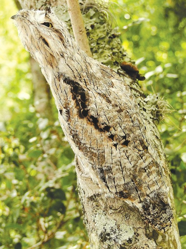 Вы, конечно, уже слышали об исполинских, или лесных, козодоях. Эти птички имеют весьма своеобразный облик и известны своей манерой прикидываться пенёчком.