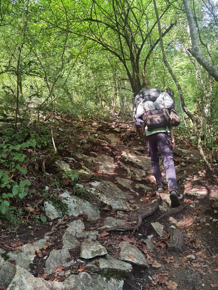 Вернулись на поляну с совой, разложили солнечную панель, приготовили обед и начали планировать наше дальнейшее перемещение (теперь уже с интернетом). В это время мимо нас проходил мужчина, выгуливающий собак и поинтересовался кто мы, куда и откуда. Рассказал, что сам уже всё здесь обходил и все тропы знает. Поделились с ним планами пойти на Ажек, он предложил пройти туда через змейковски водопады, описывая какая тропа где сворачивает, и дал ещё несколько советов. Поблагодарили его, но проверив затем карту, решили так не идти, а проехать на автобусе.