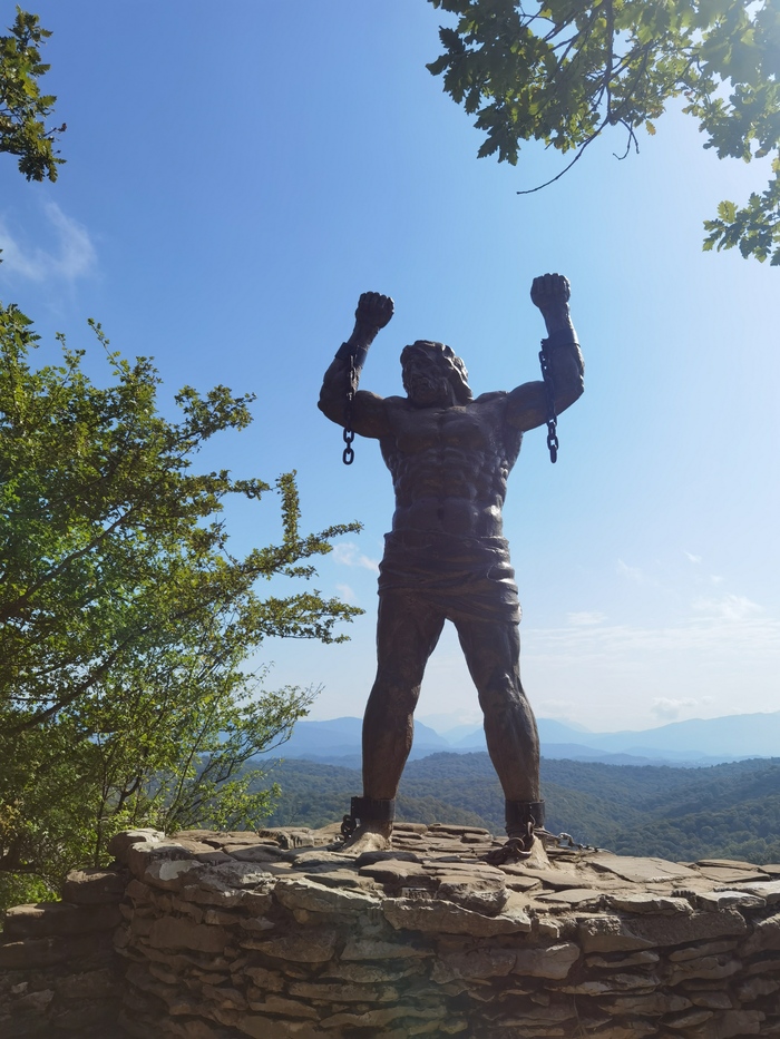 К половине десятого мы добрались до скульптуры Прометея (по приданию, именно к этим скалам приковали титана). И только здесь мы встретили первых людей, идущих к нам навстречу.