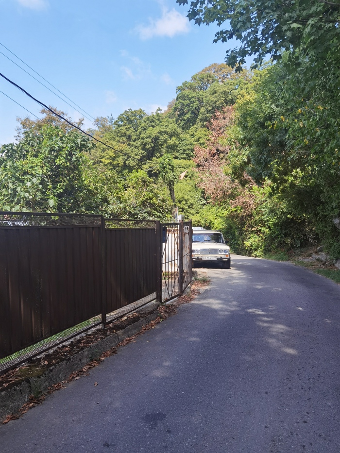 На входе в Мацестинский Лесопарк нас встретила табличка с оформлением прошлого века. Прошли дальше по заасфальтированной дорожке до нужной точки.