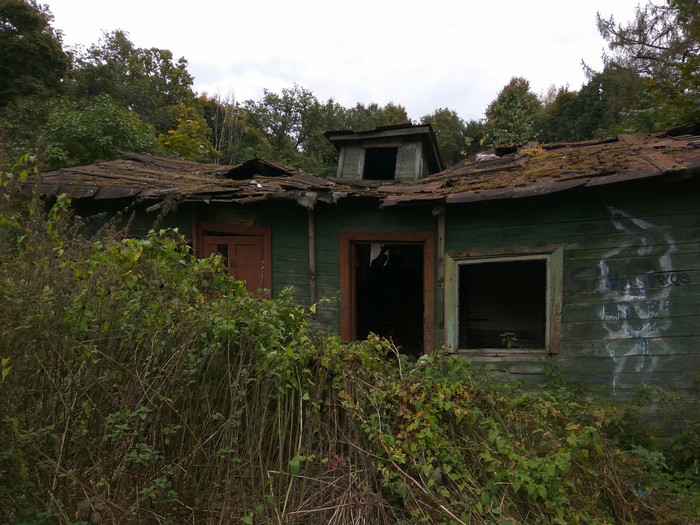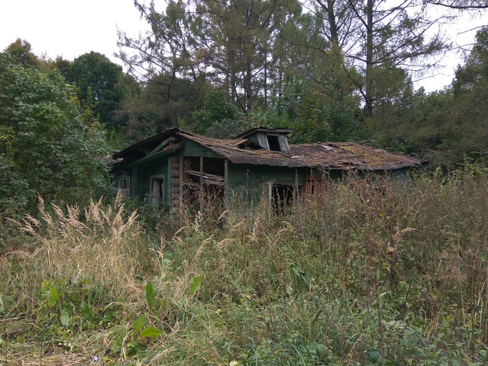 Судя по оставшимся на против него покосившимися палкам забора, и остаткам стен в высокой траве(фотографировать не стал) тут было домиков 5-6.
