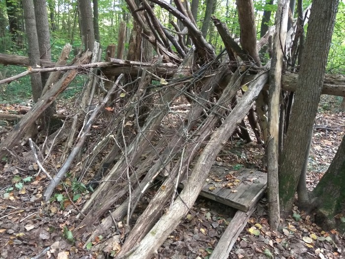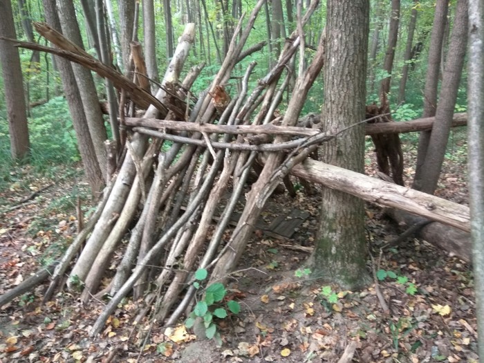 Прогуливаясь по лесу, нашли вот такое место стоянки неизвестного короля леса.