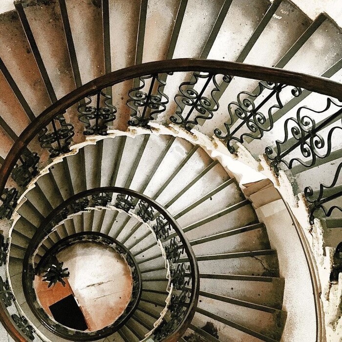 Респектабельный доходный дом в стиле модерн в районе Чистых прудов. Довольно простая винтовая лестница. Подобные конструкции создавались для экономии пространства.