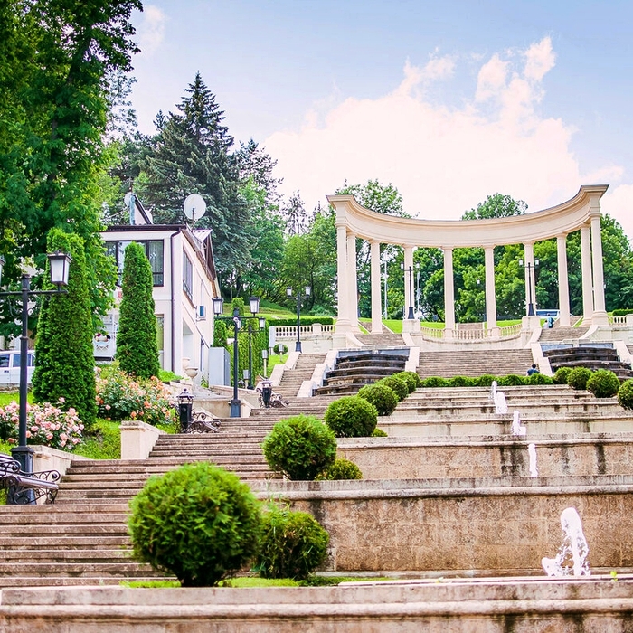 170 ступеней. Украшена фонтанами и цветами. Вечером разноцветно подсвечена.