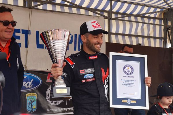 Фрэнки Запата (Franky Zapata), разработчик Flyboard Air, в субботу установил новый мировой рекор по дальности полета на ховерборде. Запата пролетел по побережью Соссе-ле-Пен (Франция) 2252 метра. Рекорд осуществлен при помощи Flyboard Air. Текущее достижение перекрывает предыдущее почти в 10 раз (предыдущий рекорд всего 275,9 метров).