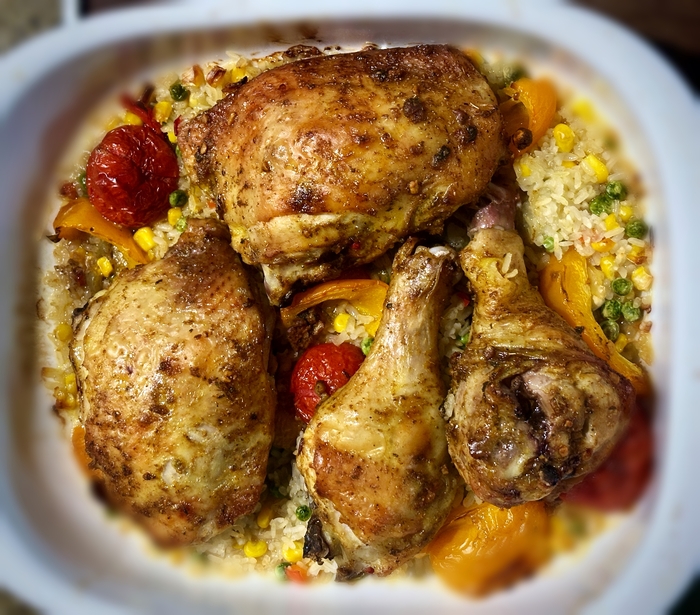 Совершенно ничего нового, но очень просто и относительно быстро. Быстро — это я про трудозатраты во временном исчислении при подготовке. Остальное время работает духовка. И от того как она работает будет зависеть "длинно" или "коротко". Ну и от курицы конечно.