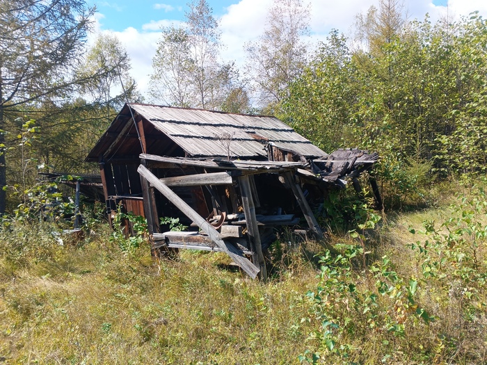 Беседка совсем развалилась, дровяник тоже. Но как ни странно, само зимовье в приличном состоянии, крыша целая, на чердаке сухие матрасы и одеяла.