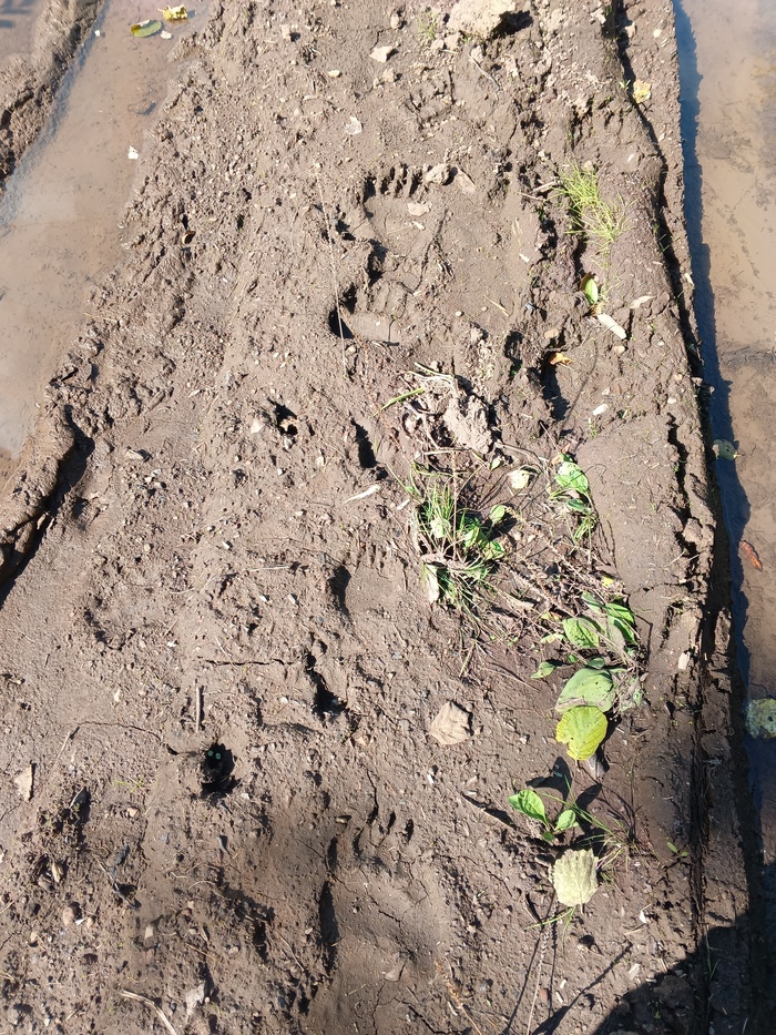 Первые 4 фото - следы медведя, небольшого, скорее всего весенний выводок, потому что лапа не больше моей ладони. На последних двух фото видно большой след копыта сахатого и поменьше следы кабарги.