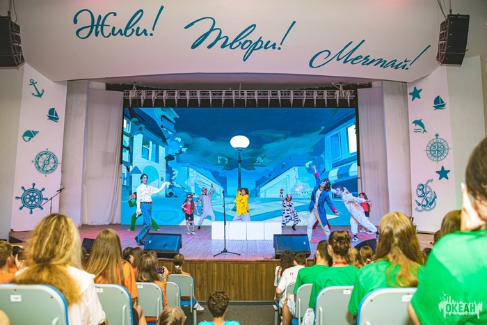 Хоть мы так и не порепетировали в Ливадии, но зато на первый гастрольный спектакль во Всероссийском Детском Центре Океан мы приехали отдохнувшие и заряженные неимоверным количеством энергии. Вот только главный герой Джуниор (Федя), который должен быть бледным домашним мальчиком, оказался черес чур загорелым, больше похожим на маугли, особенно если сосчитать количество его ушибов.