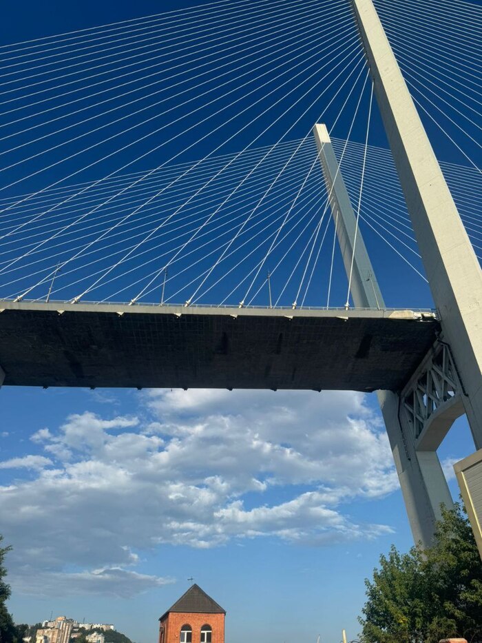 Золотой мост, громаднейший и очень красивый. Соединяет две части города