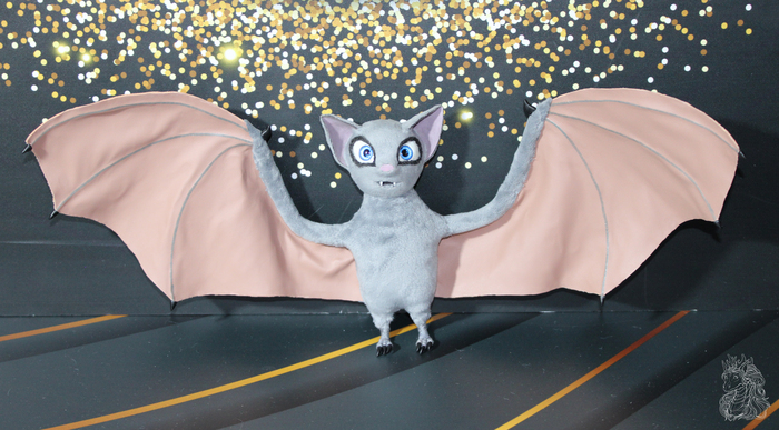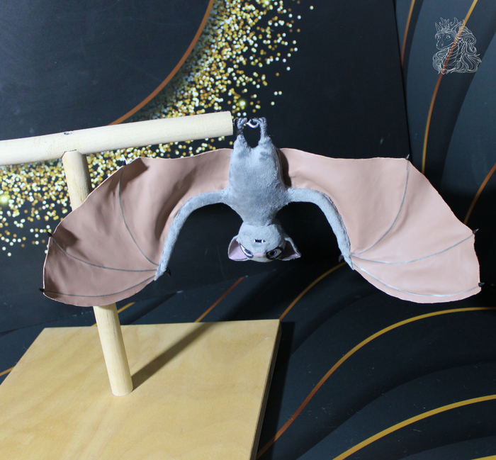 Приветствую! Сегодня знакомлю с летучим мышонком, который проходит под кодовым обозначением "бунтарь" ))) Создавался под музыку Green day и получил пирсинг в оба уха. Есть клыки и хохолок или ирокез) Выполнен из меха норки, натуральной кожи, глазки стеклянные, носик бусинка. Лапки и крылья на проволочном каркасе.