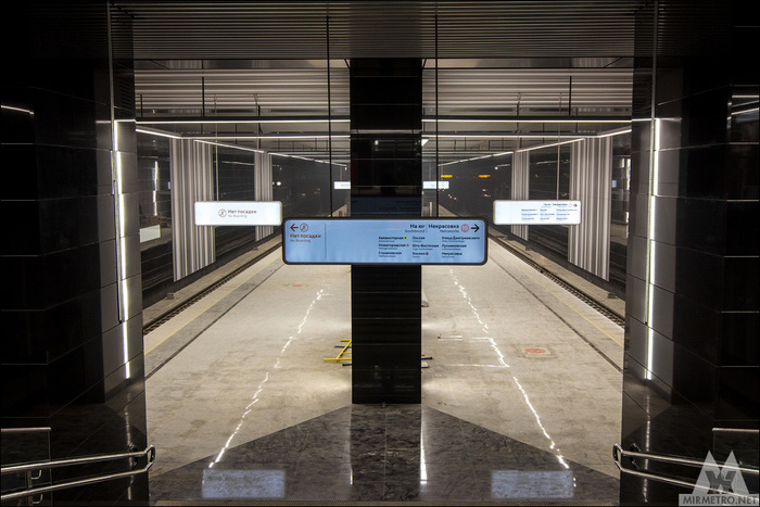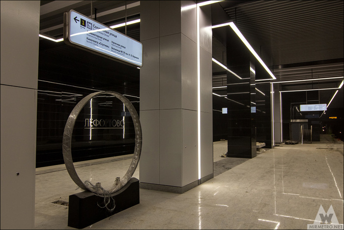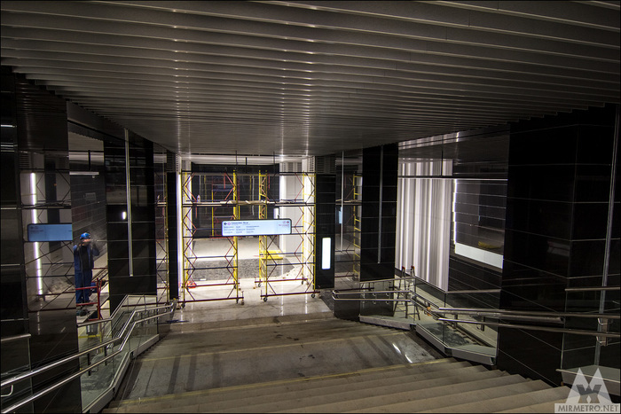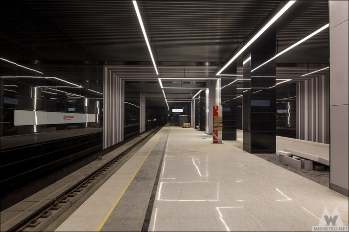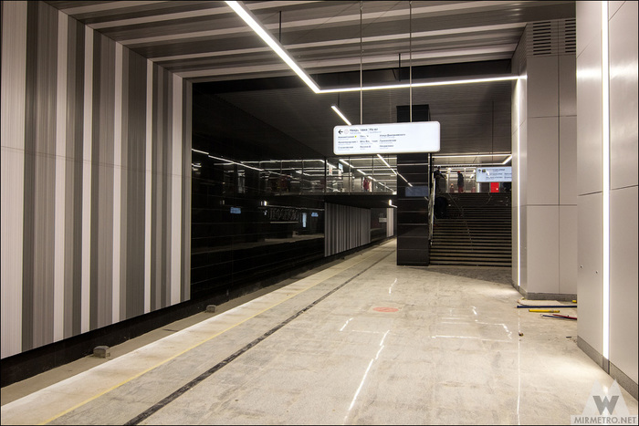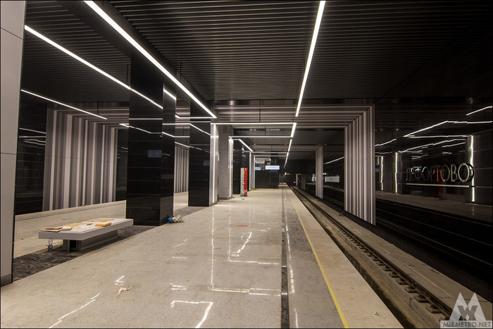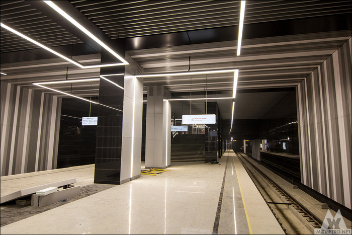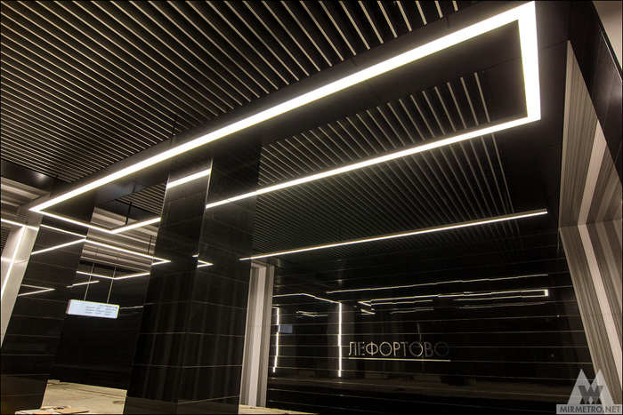 Оригинально на станции выполнено освещение при помощи световых полос: