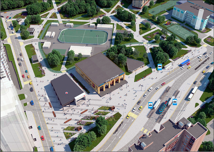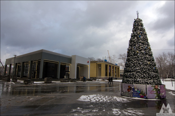 Здание вестибюля хорошо гармонирует с расположенным по соседству кинотеатром "Спутник", сооружённым в далёком 1958 году: