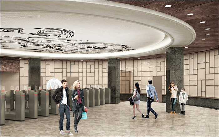 Подземный аванзал украсят монохромные тематические рисунки, напоминающие о богатом историческом наследии района Лефортово: