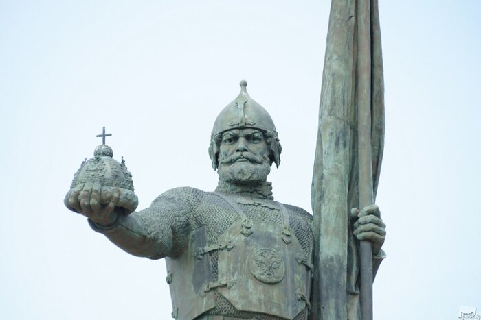 Хотя нет. Еще ее можно посмотреть в Новочеркасске на памятнике Ермаку. Изваянный скульптором В. А. Беклемишевым еще до революции бронзовый атаман в левой руке держит боевое знамя, а правой протягивает корону покоренного им Сибирского царства – ту самую "сибирскую шапку" 1684 года.