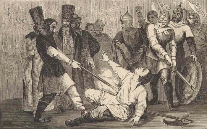 Многие люди, заслуживающие доверия, видели, как несли этого ребенка с непокрытою головою. Так как в это время была метель и снег бил мальчику по лицу, то он несколько раз спрашивал плачущим голосом: “Куда вы несете меня?” Но люди, несшие ребенка, не сделавшего никому вреда, успокаивали его словами, доколе не принесли его на то место, где стояла виселица.