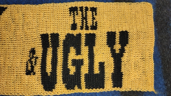 Закончил шарф по фильму "Хороший, плохой, злой" — по культовому фильму Серджио Леоне 1966 года.