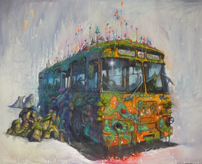 Водитель нашёл нужный автобус, зашёл в него и завёл, ну и нужда повела его на улицу, но по пути назад, произошёл казус который часто встречается зимой. Прямо перед ступенями автобуса он подскальзывается и падает, при этом одна рука и голова оказывается в автобусе.