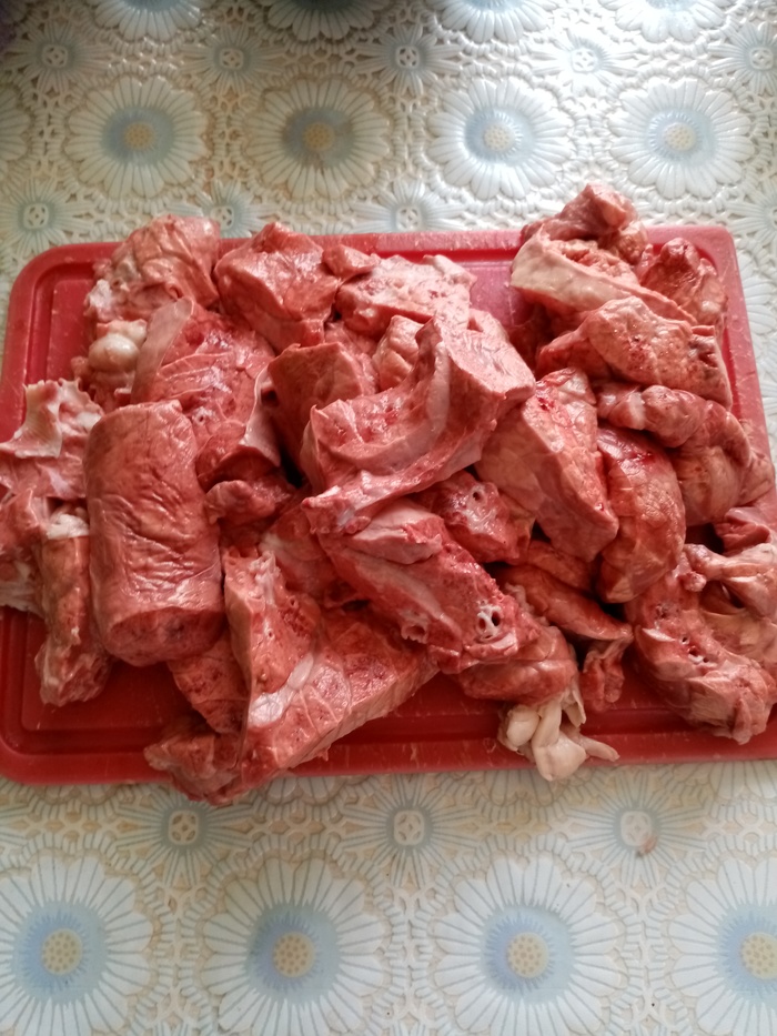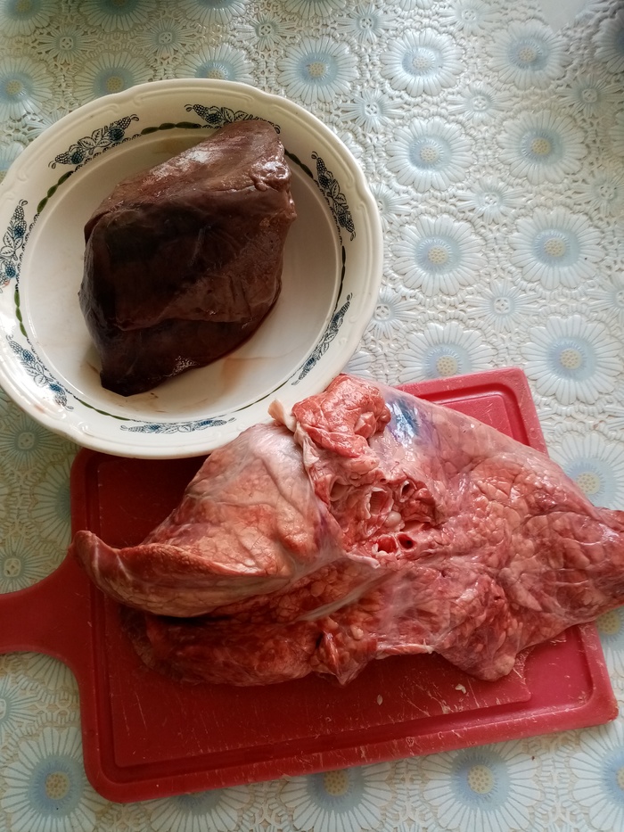 По 200-250 грамм печени, сердца и легкого (у меня свиные, говяжьи вкуснее, но так тоже ничего)