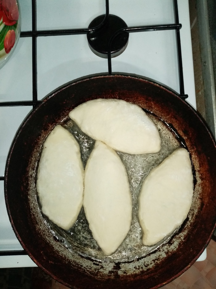 Пирожки должны еще минут 30 расстояться в тепле, как раз пока последние готовы - первые дошли и можно греть сковородку. Жарю в масле, на среднем огне.