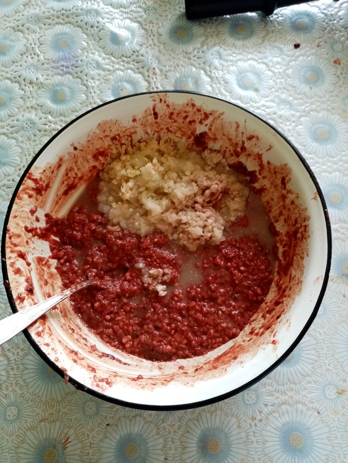 Начинаю приготовление с начинки. Ливер немного вымочила, сварила в подосленной воде, остудила в бульоне и пропустила через мясорубку. Лук обжарила. Теперь добавить специи и приправы, хорошо остудить. Это все.