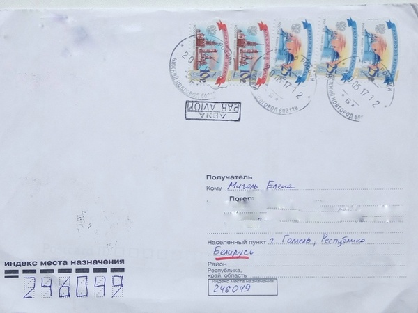 Первый конверт пришёл из Екатеринбурга. Потрепалась только почтовая наклейка, сам конверт целый.
