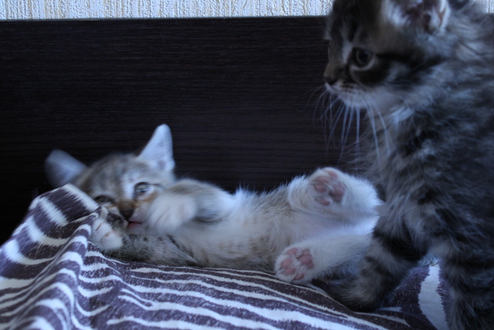 Котёнок-мальчик, ответственный и ласковый. Заботится о своих сестричках!