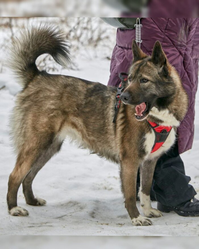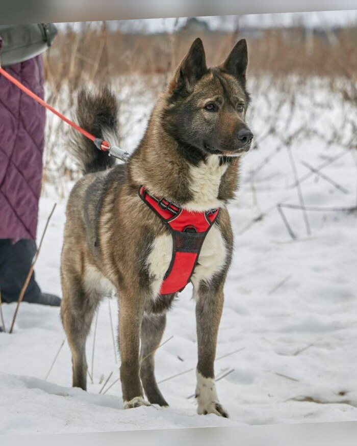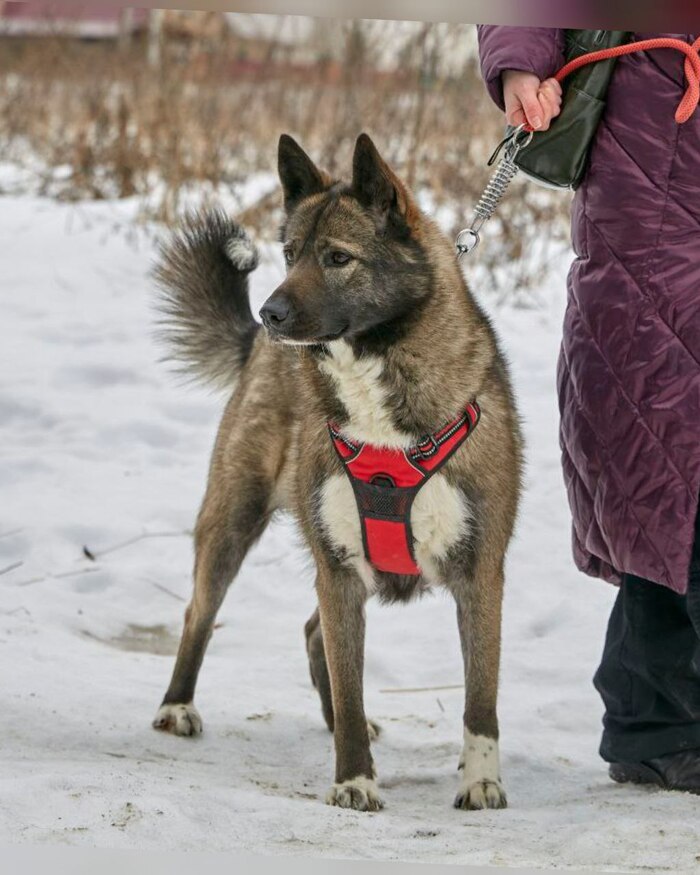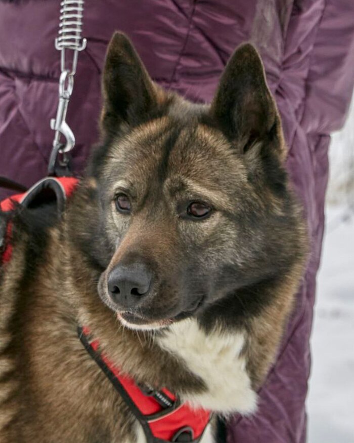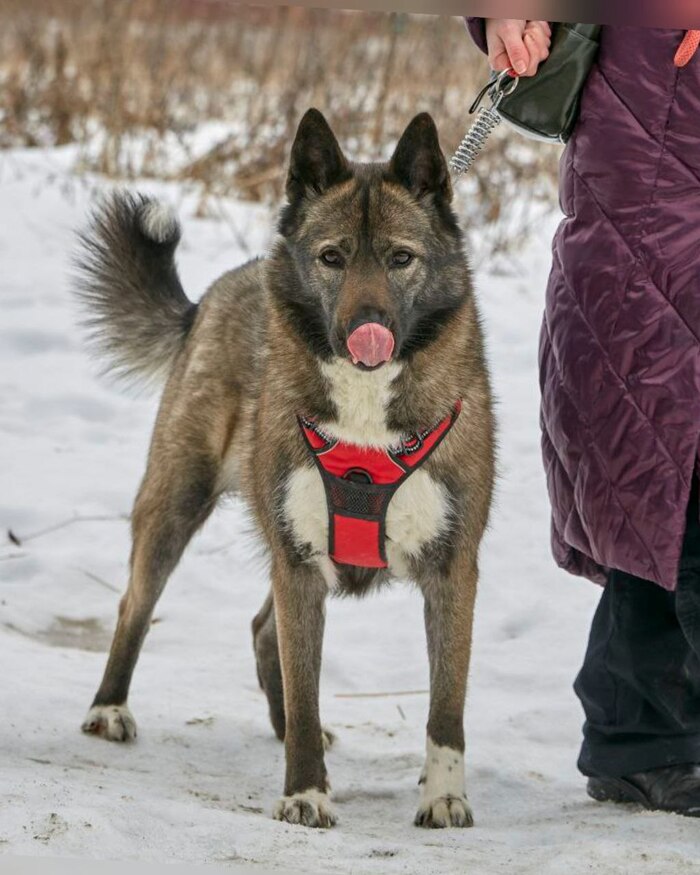 Её окрас называют «собольим» — черно-бурое, дикое золото. Она — метис хаски и акиты, впитавшая красоту одной породы и мощь другой. Рост — чуть выше колена, вес 25 кг. Симбе - 5 лет. На первый взгляд в ней чувствуется северная сдержанность, но стоит ей довериться — и вы увидите, какое это солнечное, нежное создание 💜